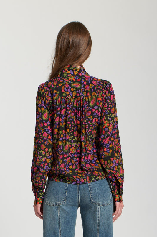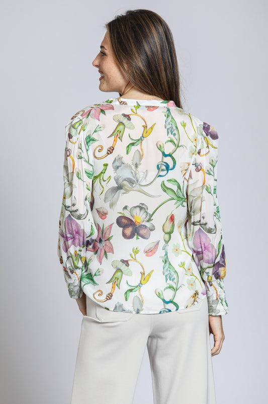 Tropical Printed Wrap Blouse With Tabbed CuffsRegular price $89.00 USDRegular priceUnit price / per-