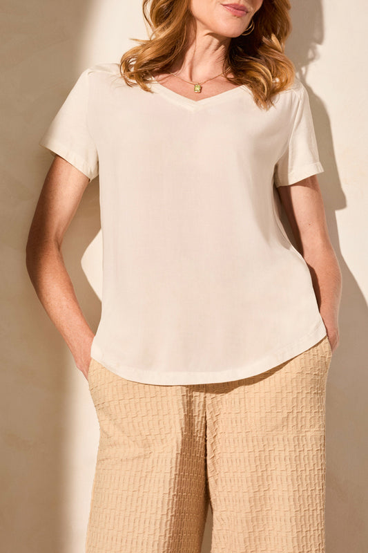 Short Sleeve Frill V-Neck Top with Ladder Tape DetailRegular price $79.00 USDRegular priceUnit price / per-