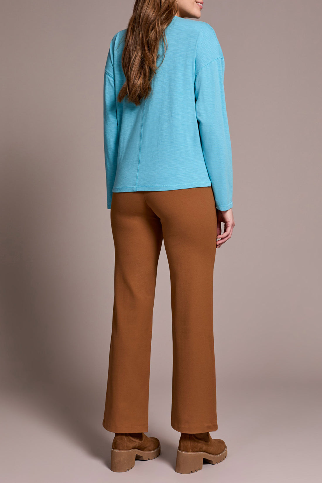 Opt for versatile, everyday style with this long-sleeve top, featuring a flattering V-neckline. The flatlock seams introduce subtle structure to this relaxed piece, while the slub knit fabric offers breathability, softness, and a touch of stretch for all-day comfort.