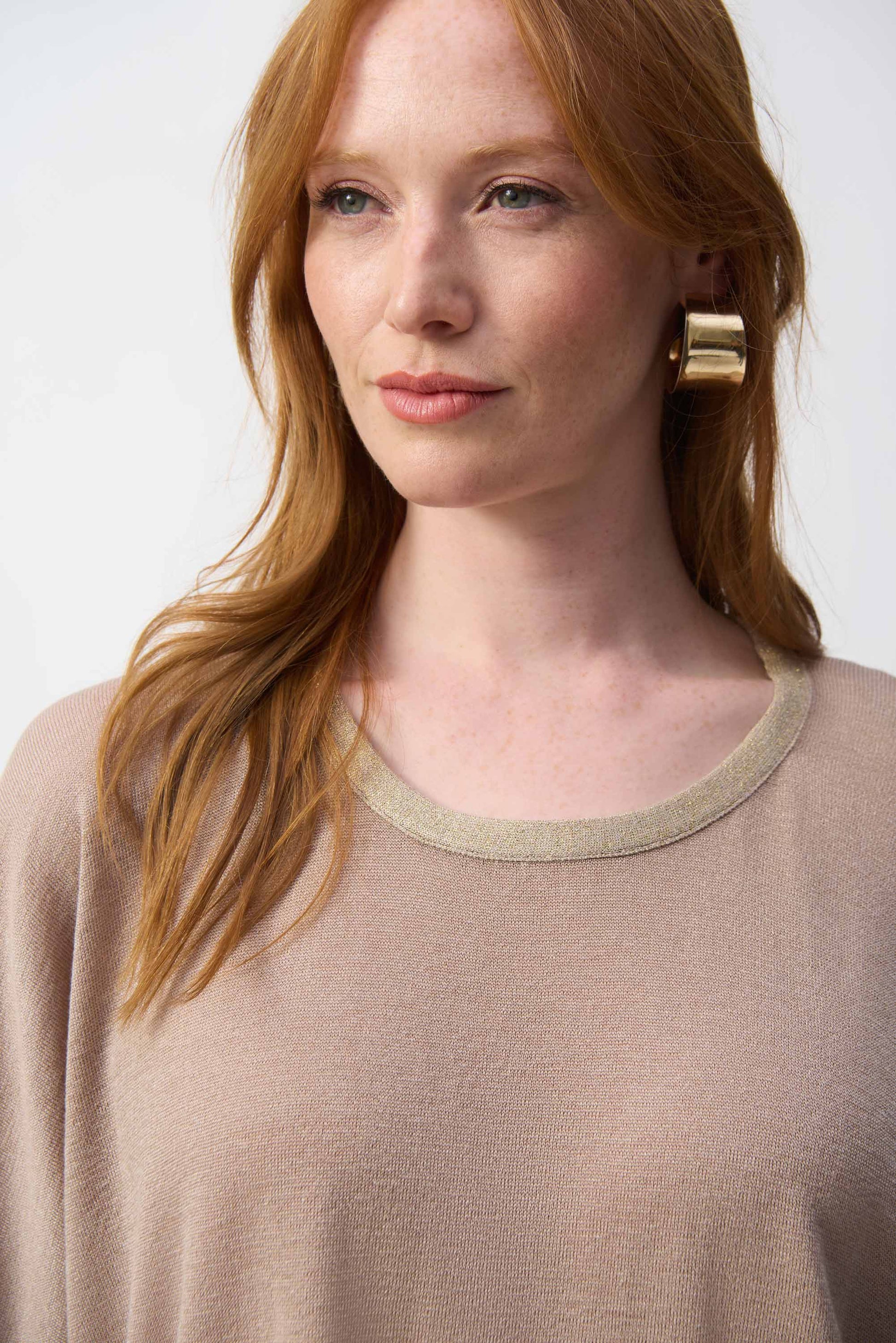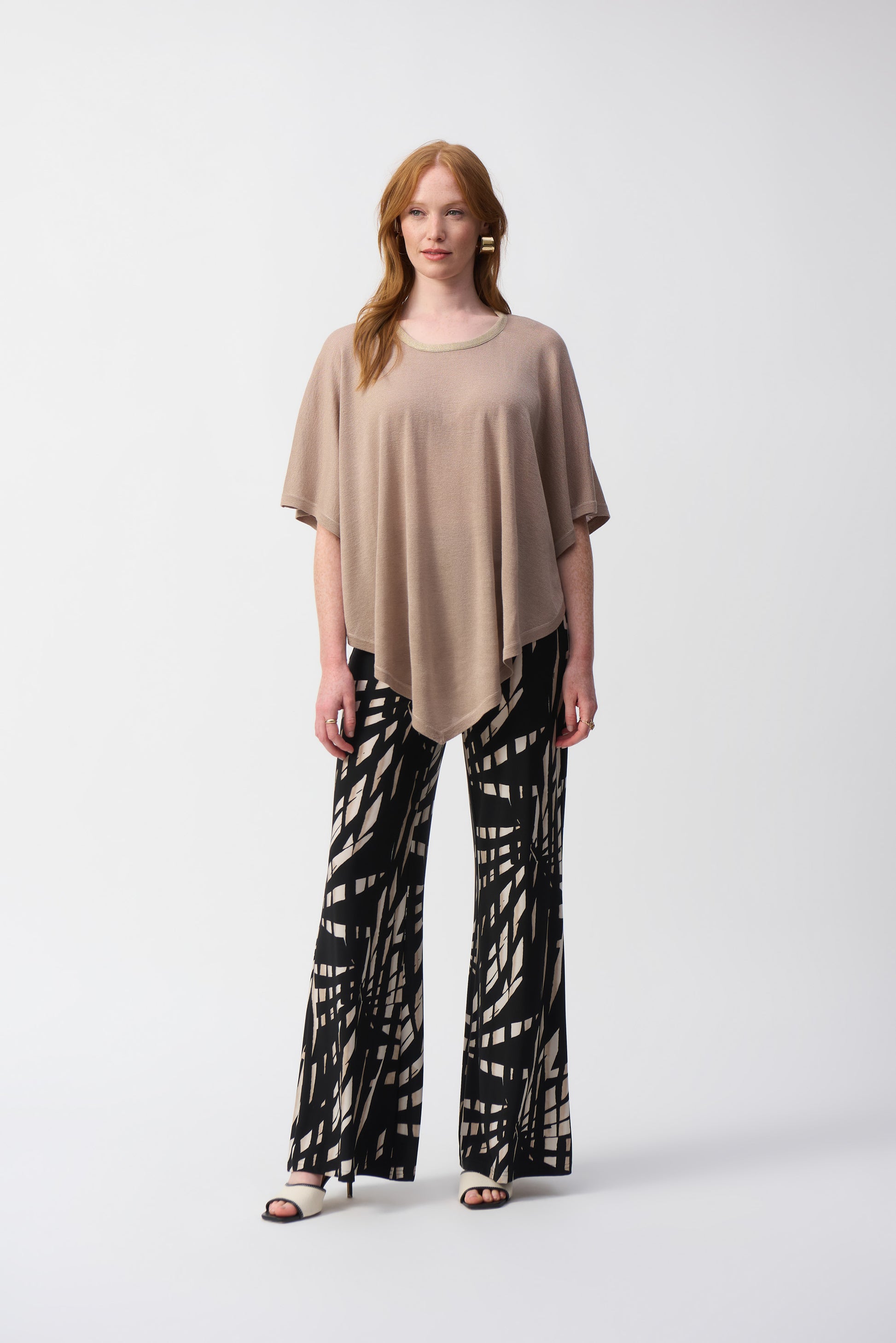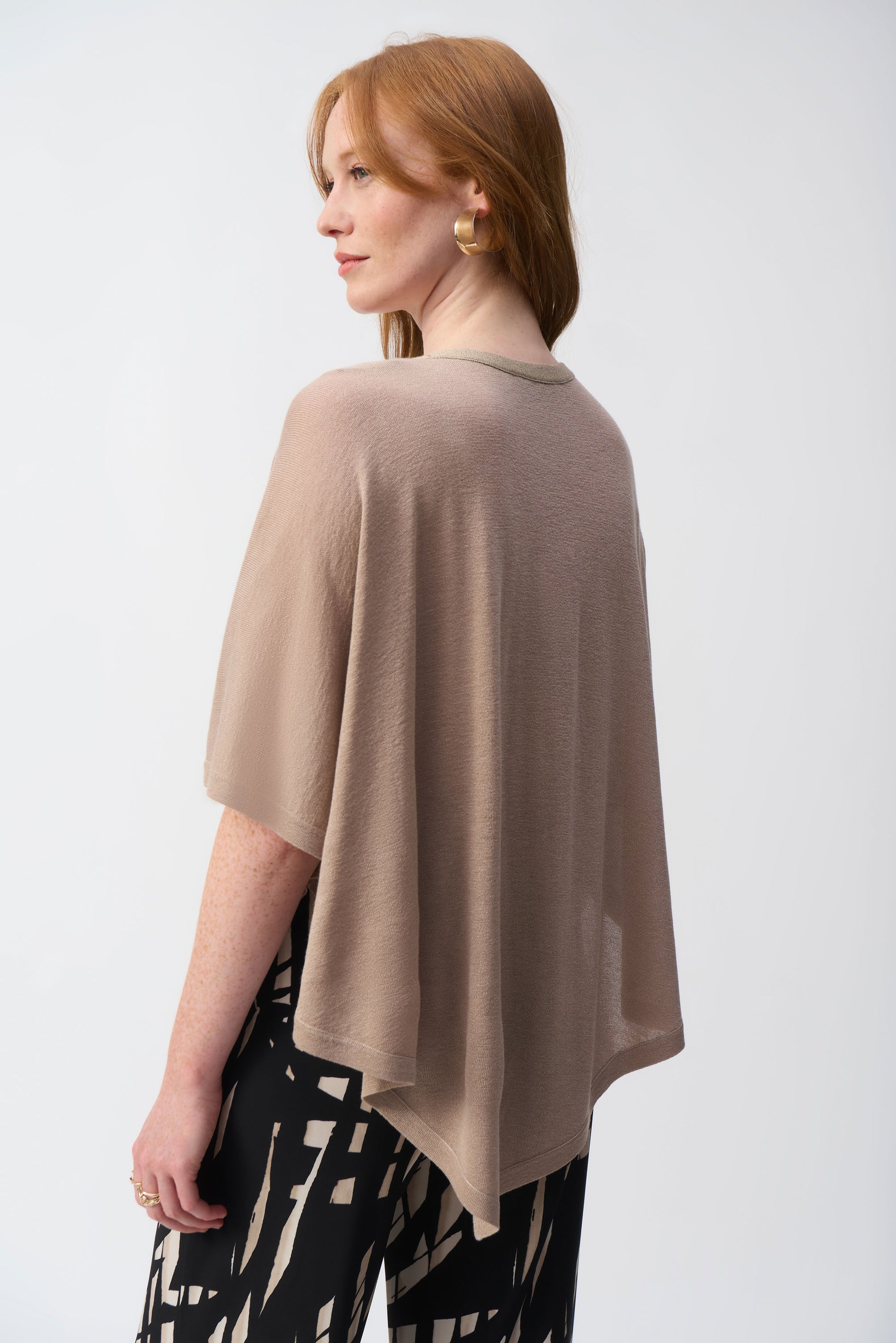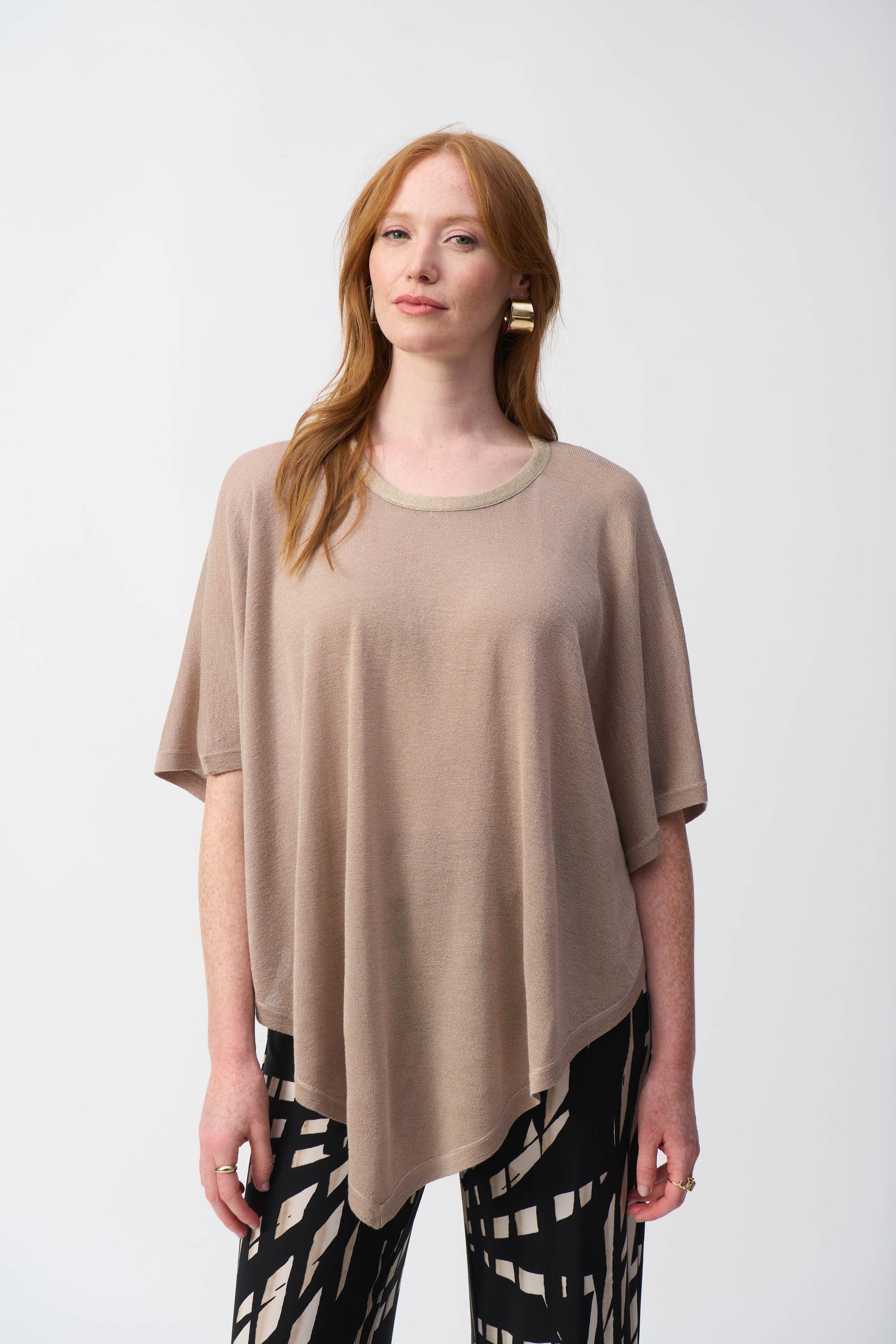 Shimmer and sway in this flowy sweater knit poncho top, featuring a captivating metallic sheen and crew neckline. Wear it over a simple camisole for a look that's remarkably light and polished.