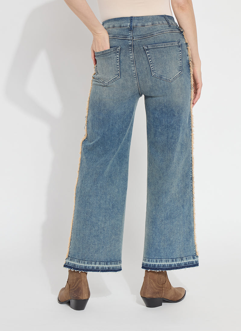Lyssé’s “Holding Power” Denim is a two-way stretch, woven denim that easily adapts to all shapes and is designed for comfort and style. It offers an authentic denim look, with distressed washes, sandblasting, whiskers and fringed hems, and “holding power” for a slimmer, smoother appearance. Designed and created by ISKO, a leading denim producer in the world, this fabric is made using advanced technology, recycled and reused materials, and with a deeply rooted care for quality – from yarn to finishing – during the production process.