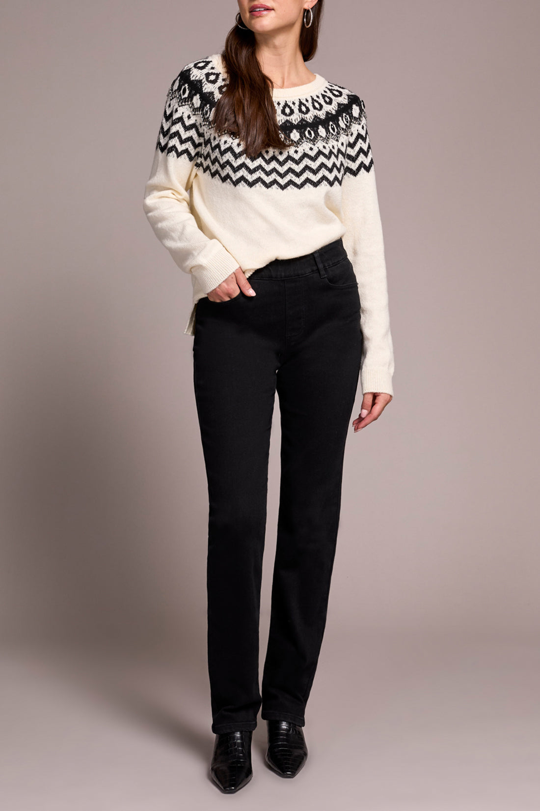 Black Sophia Pull On Straight Jeans with Pockets