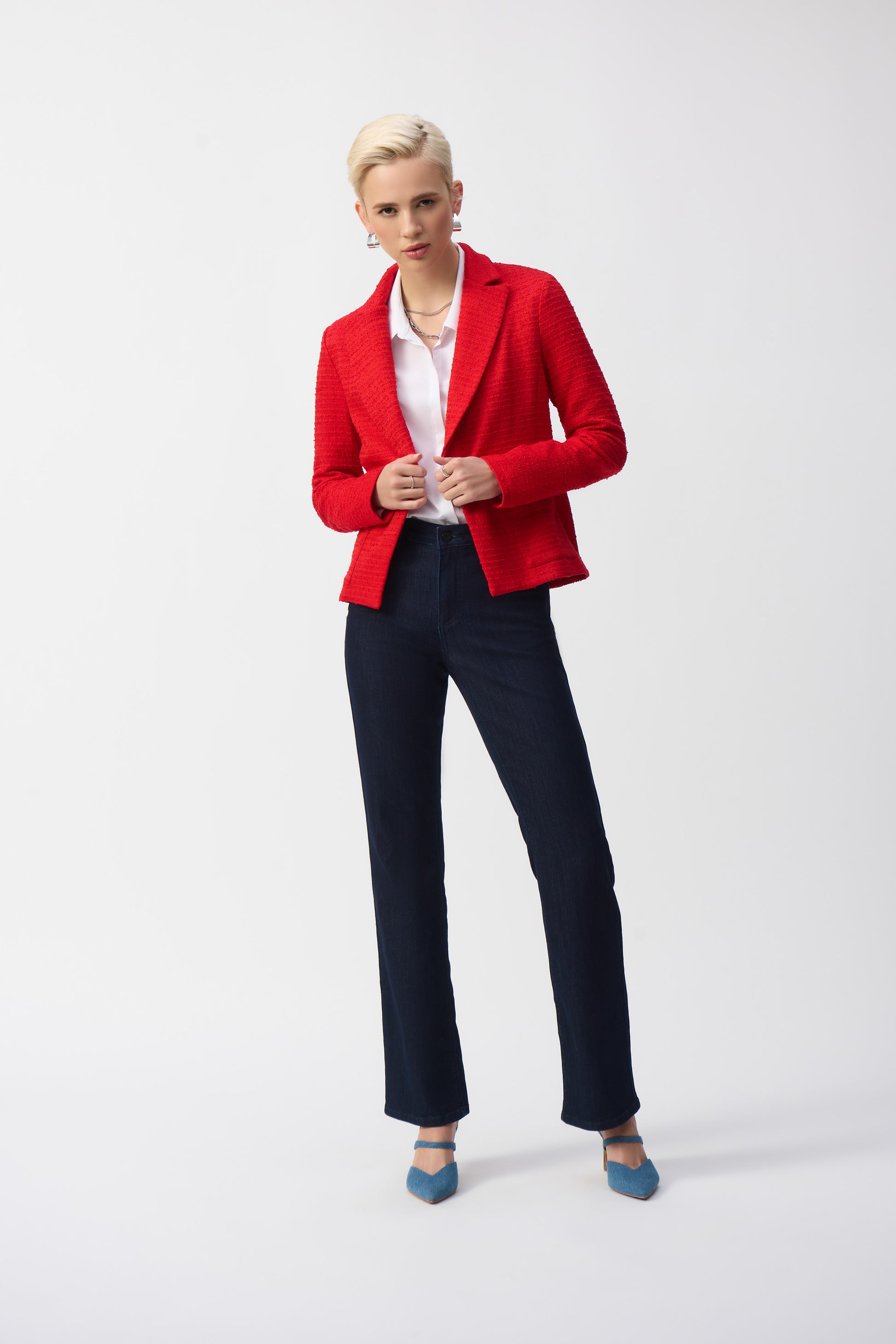 Beautifully textured bouclé fabric, a classic notched collar, and patch pockets come together to create a delightful blazer that will elevate your casual style.