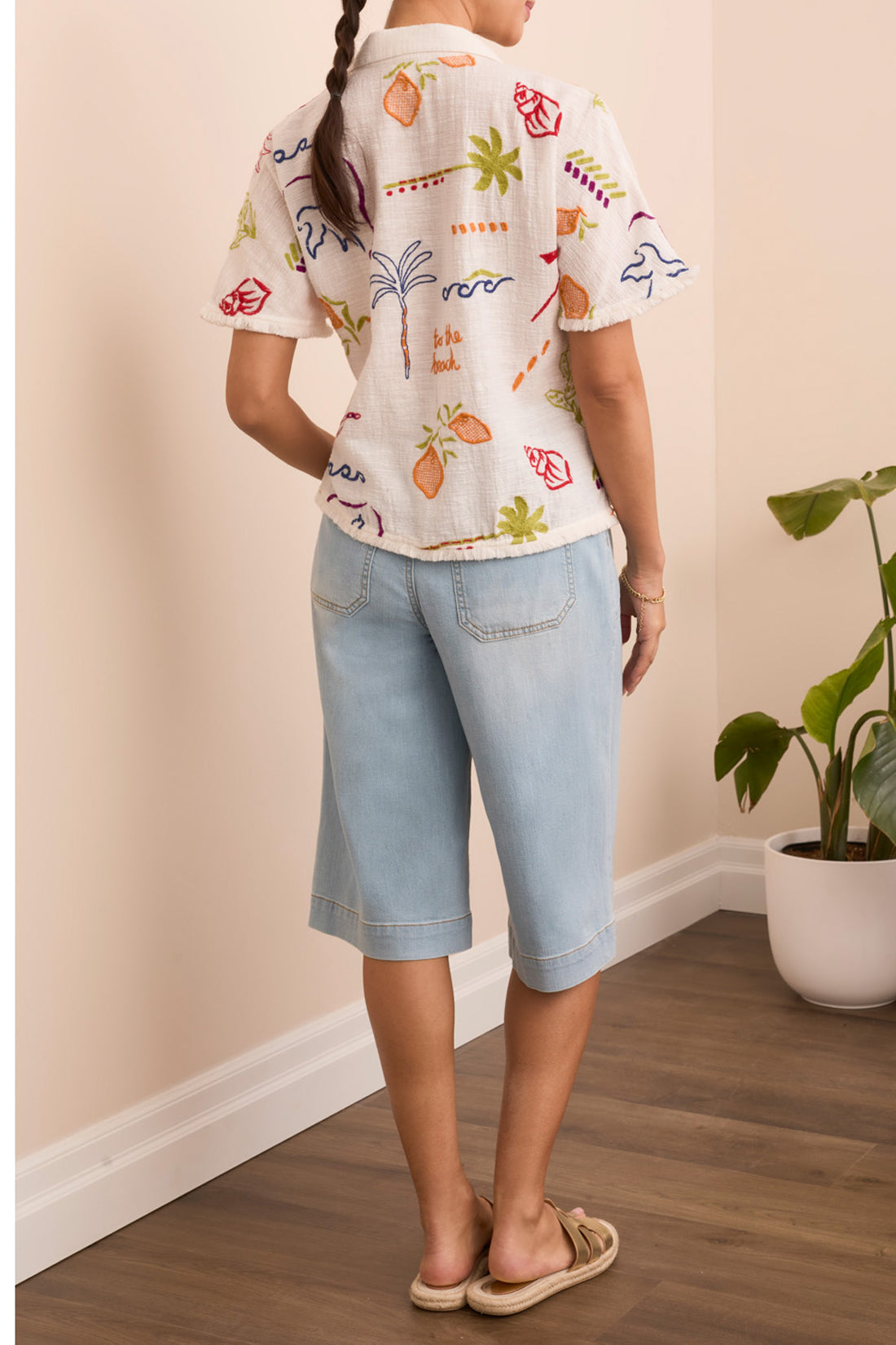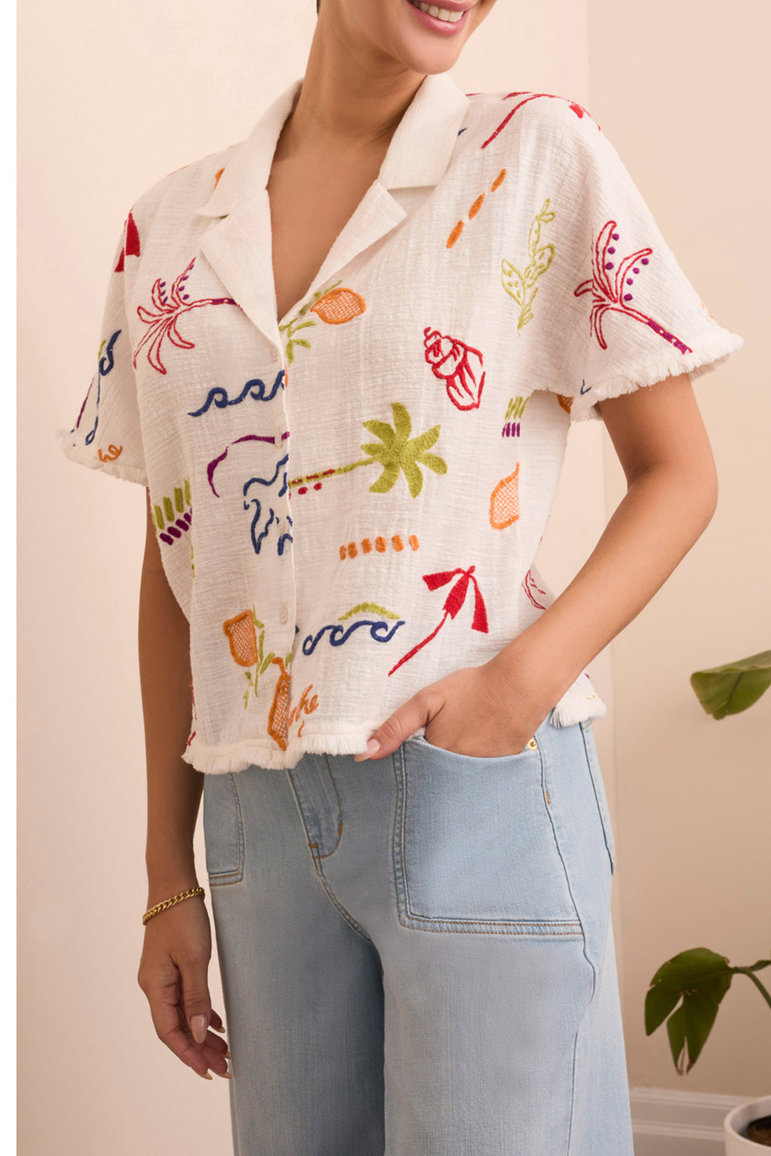 Summer Print Blouse with Fringe Detail