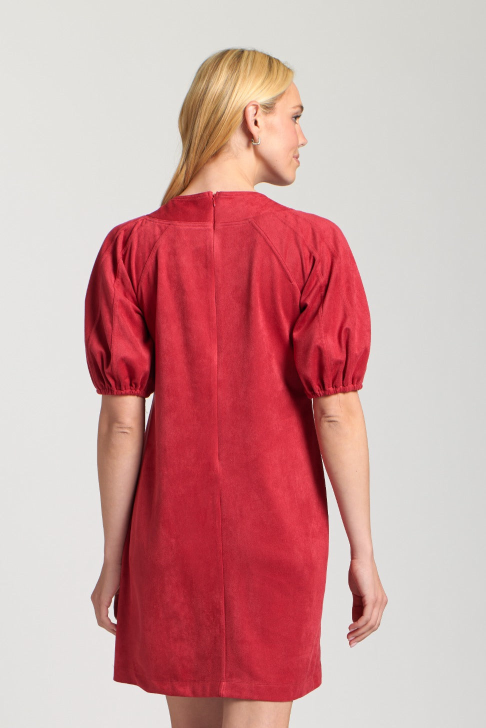 Vegan Suede Lace-Up Puff Sleeved Dress